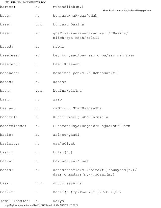 Urdu Romanised Hindi English Dictionary English Alphabetical