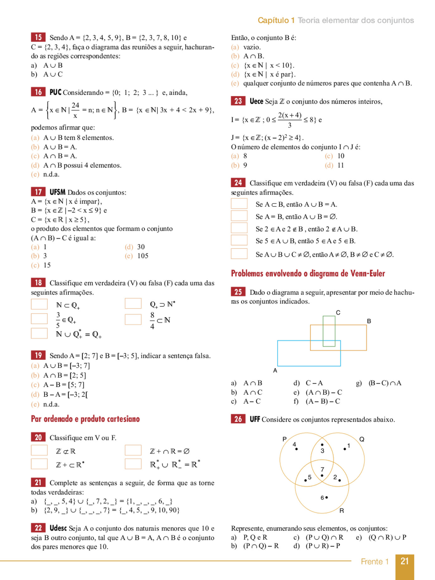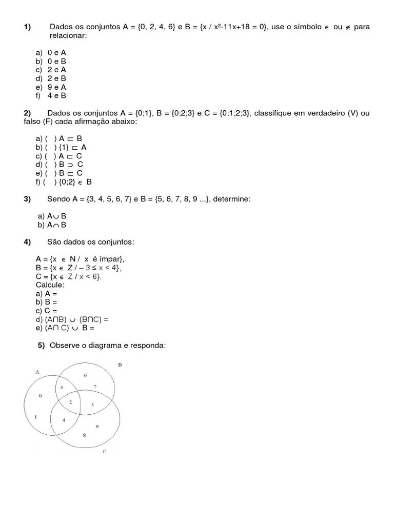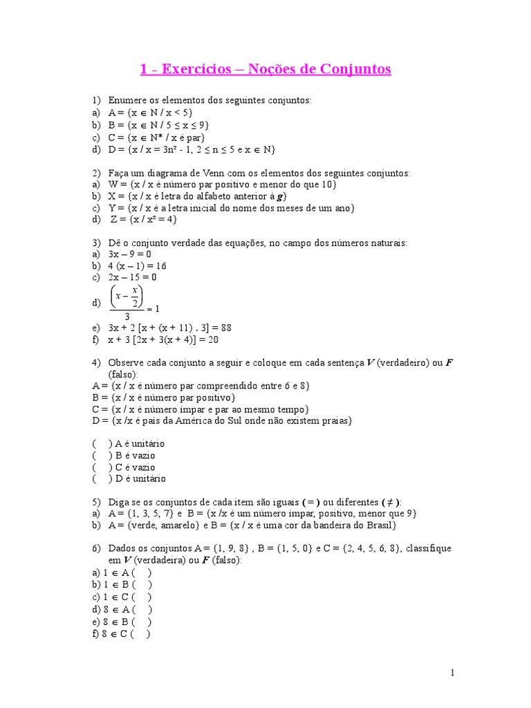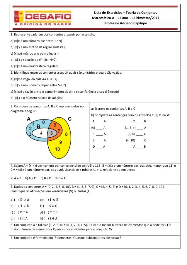 1ª Lista De Exercicios Conjuntos Exercicios Sobre Conjuntos