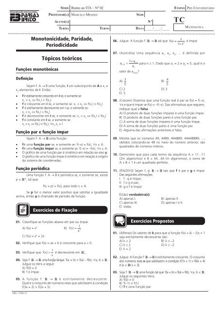 Funcoes Exercicios Gabarito No Final Rumo Ao Ita