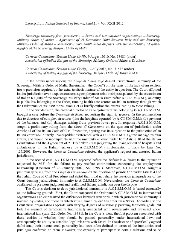 Pdf Excerpt From Italian Yearbook Of International Law Vol Xxii