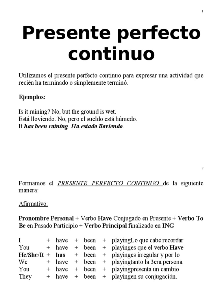 Presente Perfecto Continuo En Ingles Guia De Estudio 2020