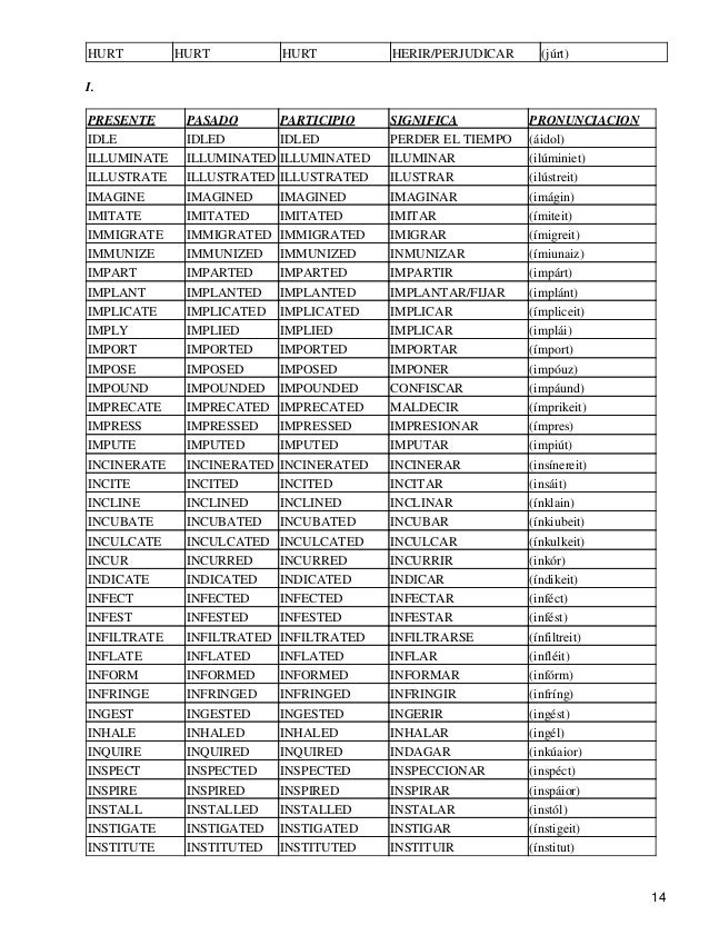 Verbos En Ingles Regulares E Irregulares Con Significado