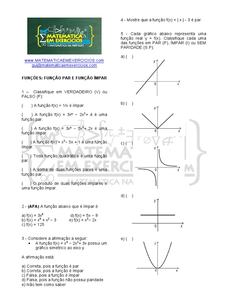 M E T E O R O T I C A Funcao Par E Funcao Impar Exercicios