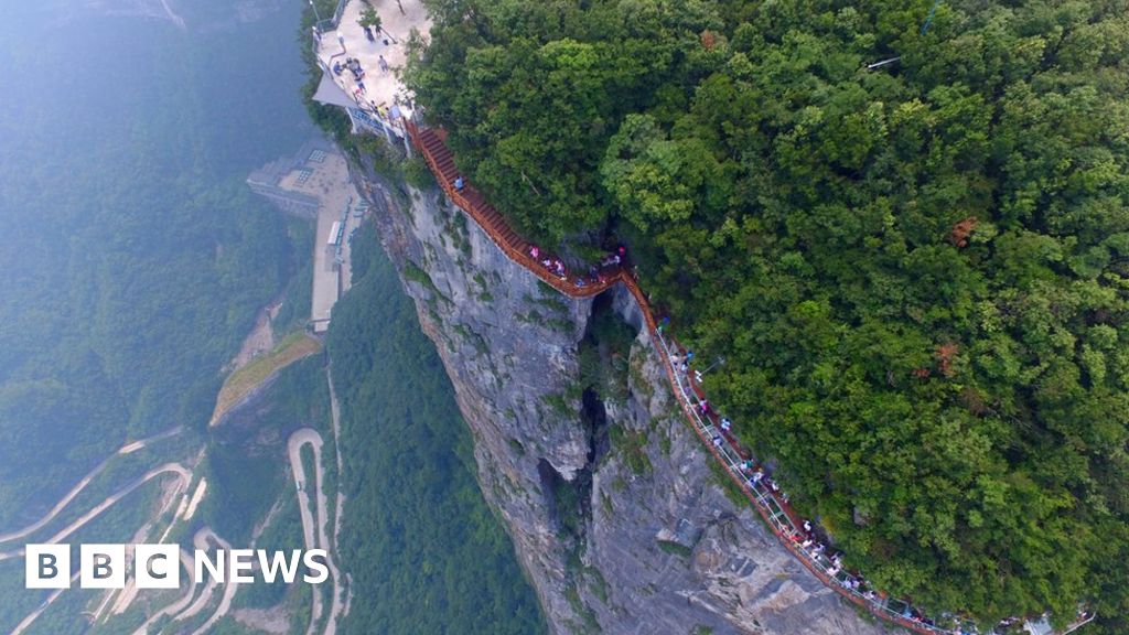 China S Glass Walkway Opens In Tianmen Mountain Bbc News