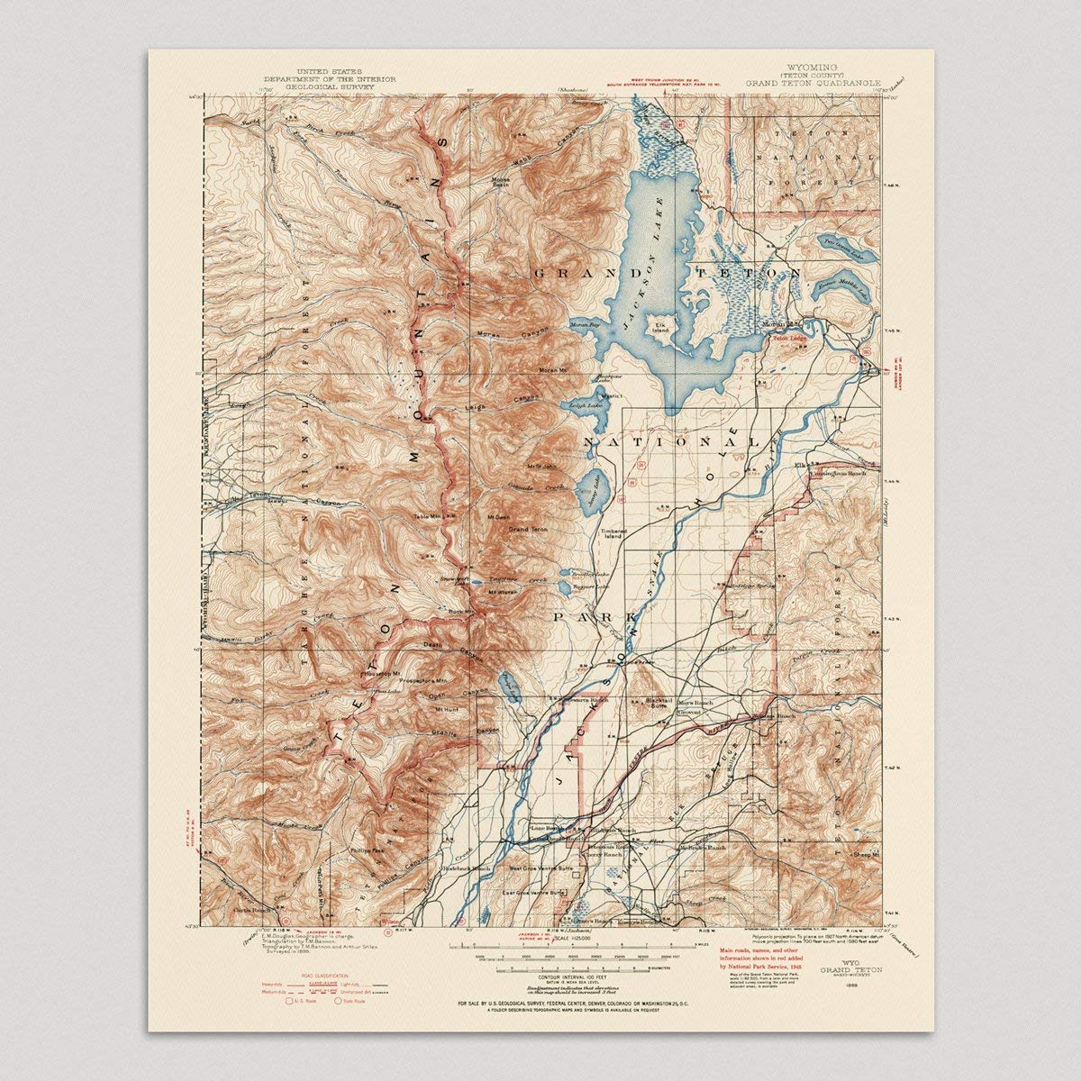 Grand Teton National Park Map Art Prints Poster Art Wall Art