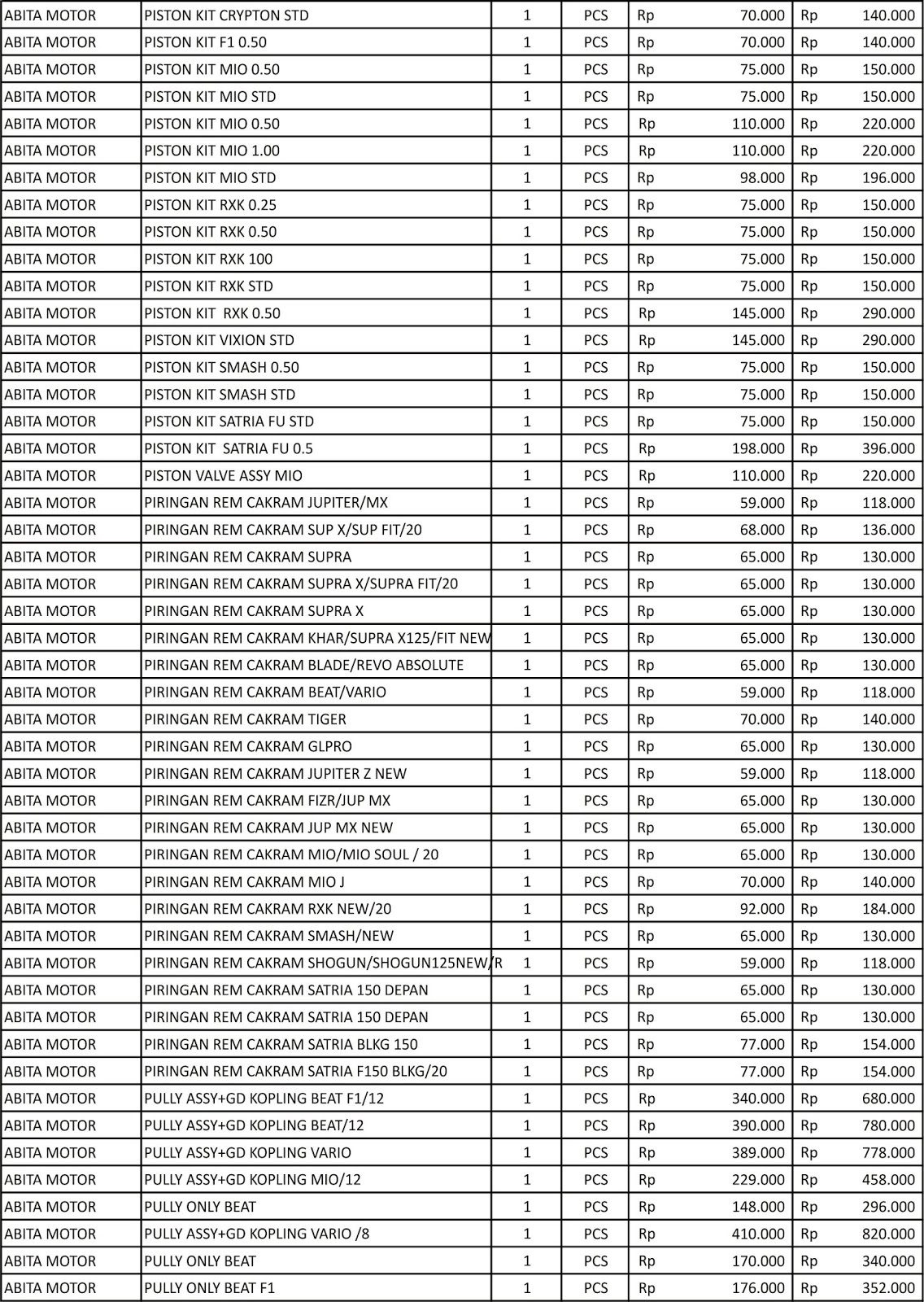 Distributor Sparepart Motor Abita Grosir Sparepart Motor Murah