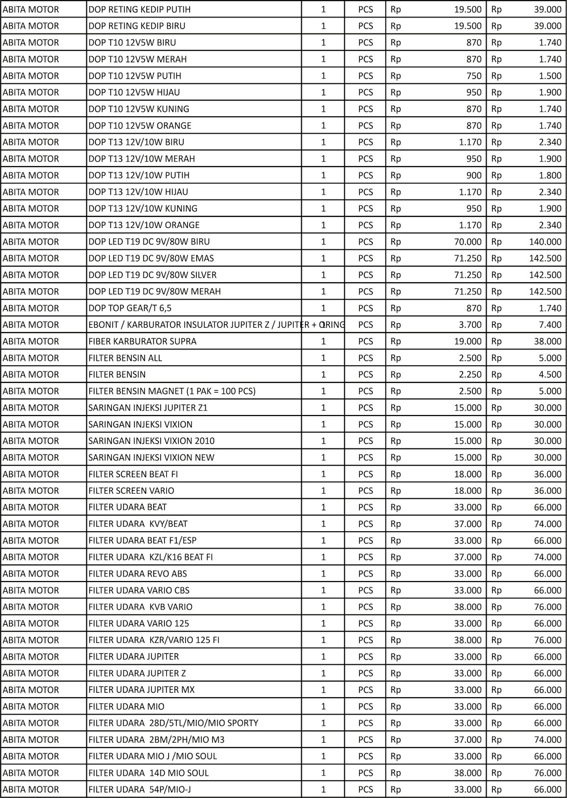 Distributor Sparepart Motor Abita Grosir Sparepart Motor Murah
