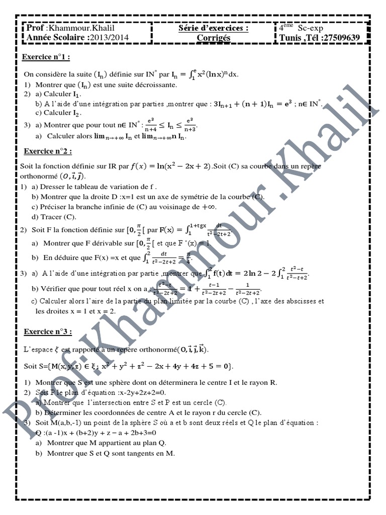Exercices Corriges Bac Sc Exp Pdf Courbe Tangente Geometrie