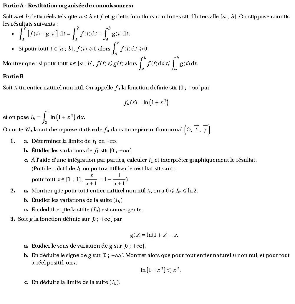 Intégration Par Partie Exercice Corrigé Terminale S