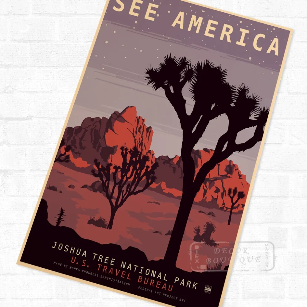 Joshua Tree National Park Travel Poster Vintage National Park Etsy