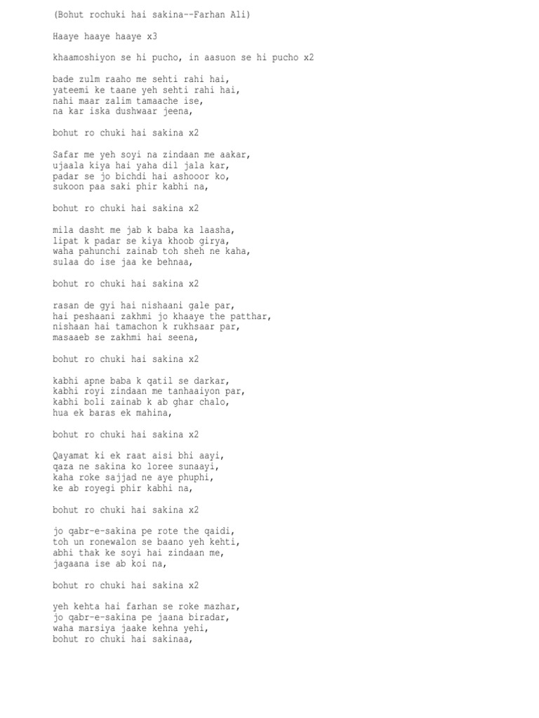 Bohut Ro Chuki Hai Sakina