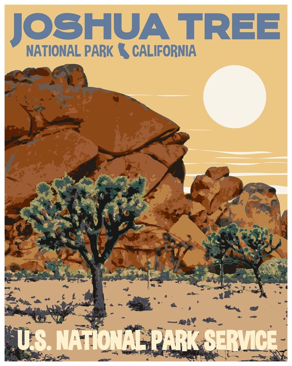Joshua Tree National Park Travel Poster Vintage National Park Etsy