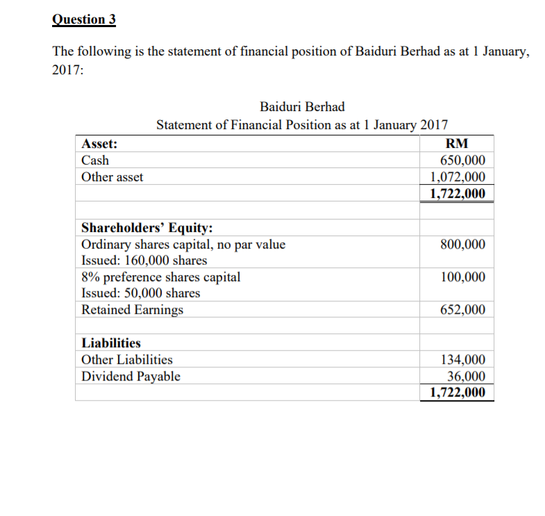 Solved Ordinary Share Capital No Par P100 Stated Value 5