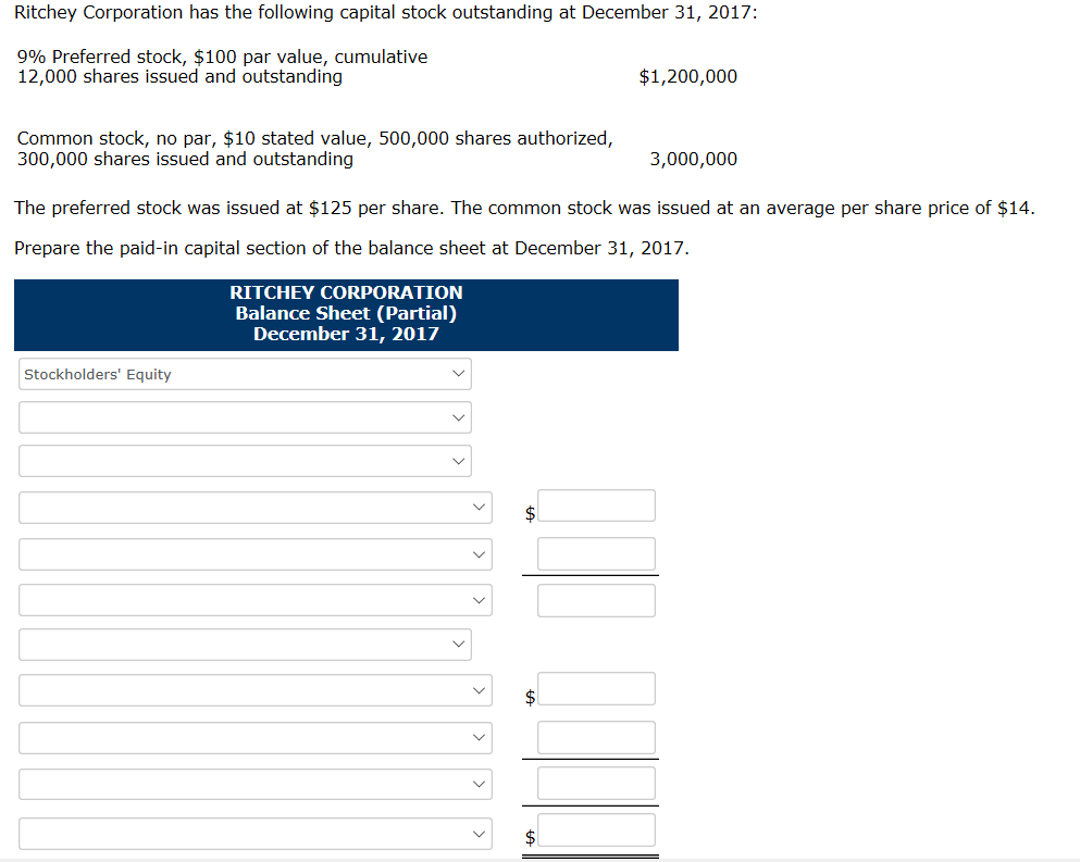 Solved Ritchey Corporation Has The Following Capital Stoc