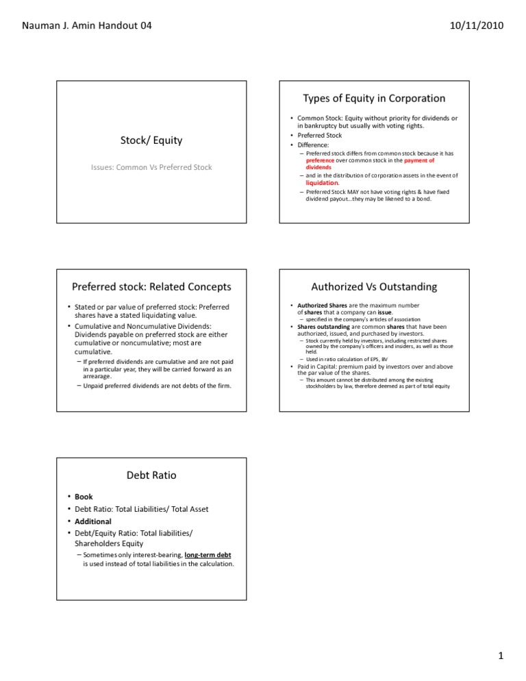 Types Of Equity In Corporation Nauman J Amin Handout 04 10 11