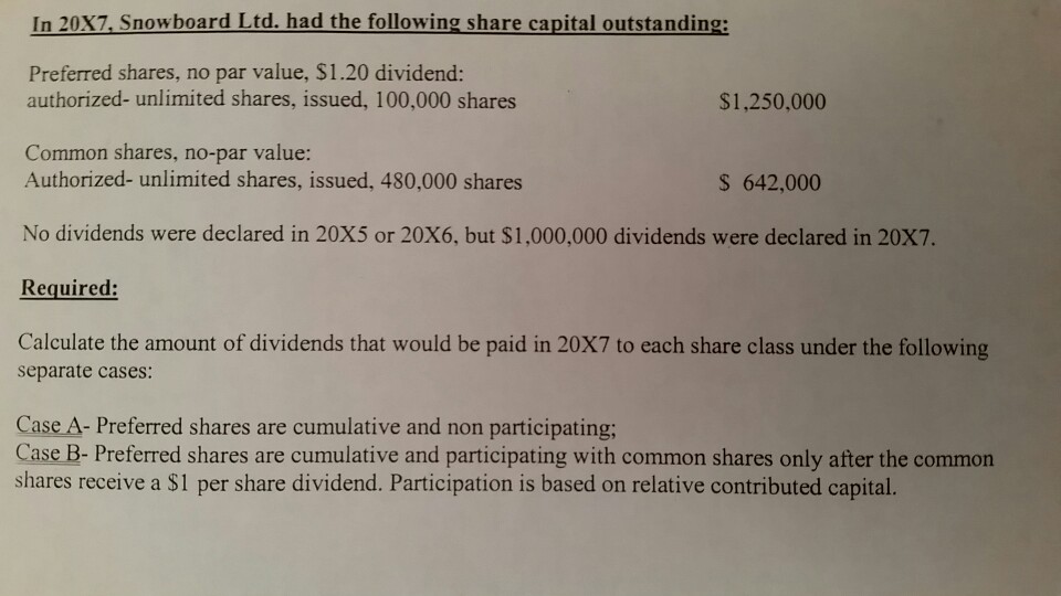 Solved In 20x7 Snowboard Ltd Had The Following Share Ca