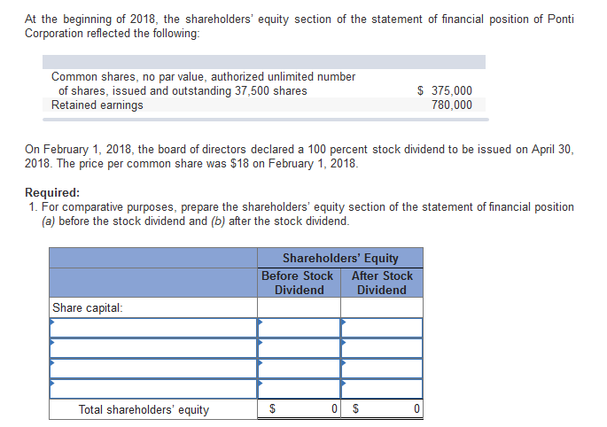 Solved At The Beginning Of 2018 The Shareholders Equity