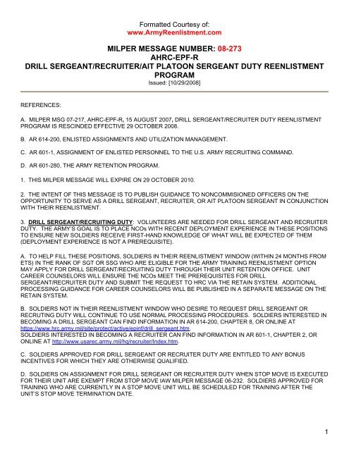 Milper Message Number 08 273 Ahrc Epf R Drill Sergeant Recruiter Ait