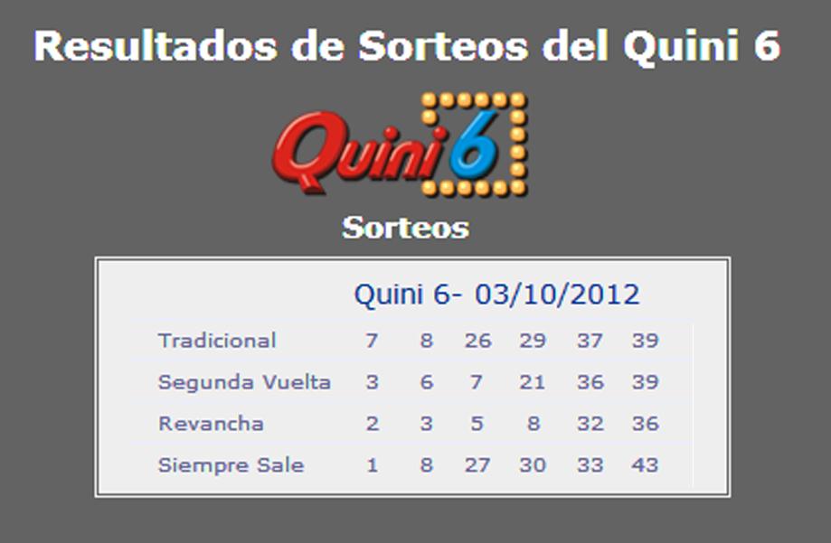 Quini 6 Sorteo Nº 2607 Del Dia Miercoles 3 10 2018 Los Facebook