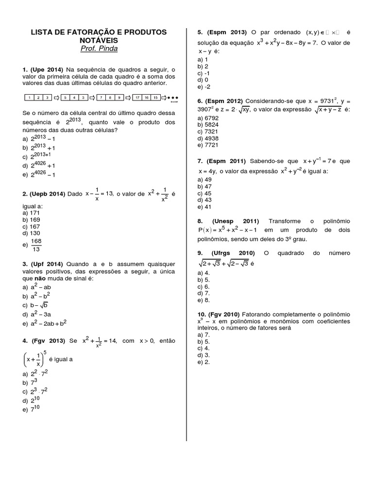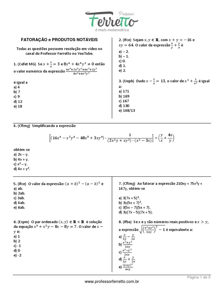 Produtos Notaveis E Fatoracao Algebra Abstrata Numeros Free