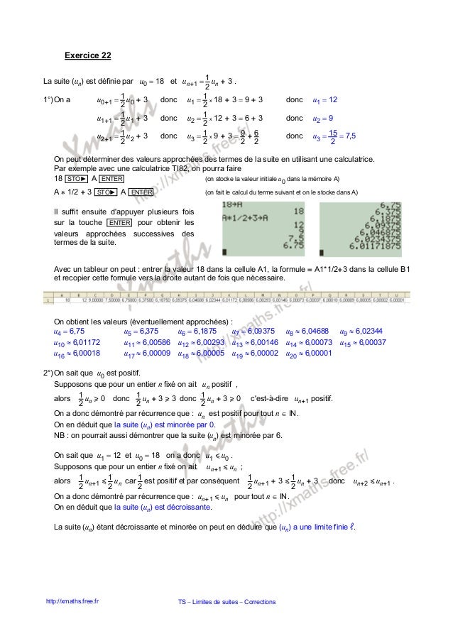 Ts Mathematiques Test N 2 Du 25 10 2007 Exercice 1 Limite