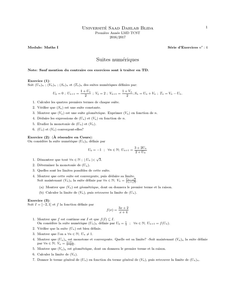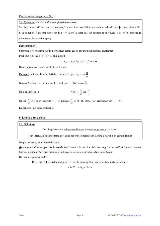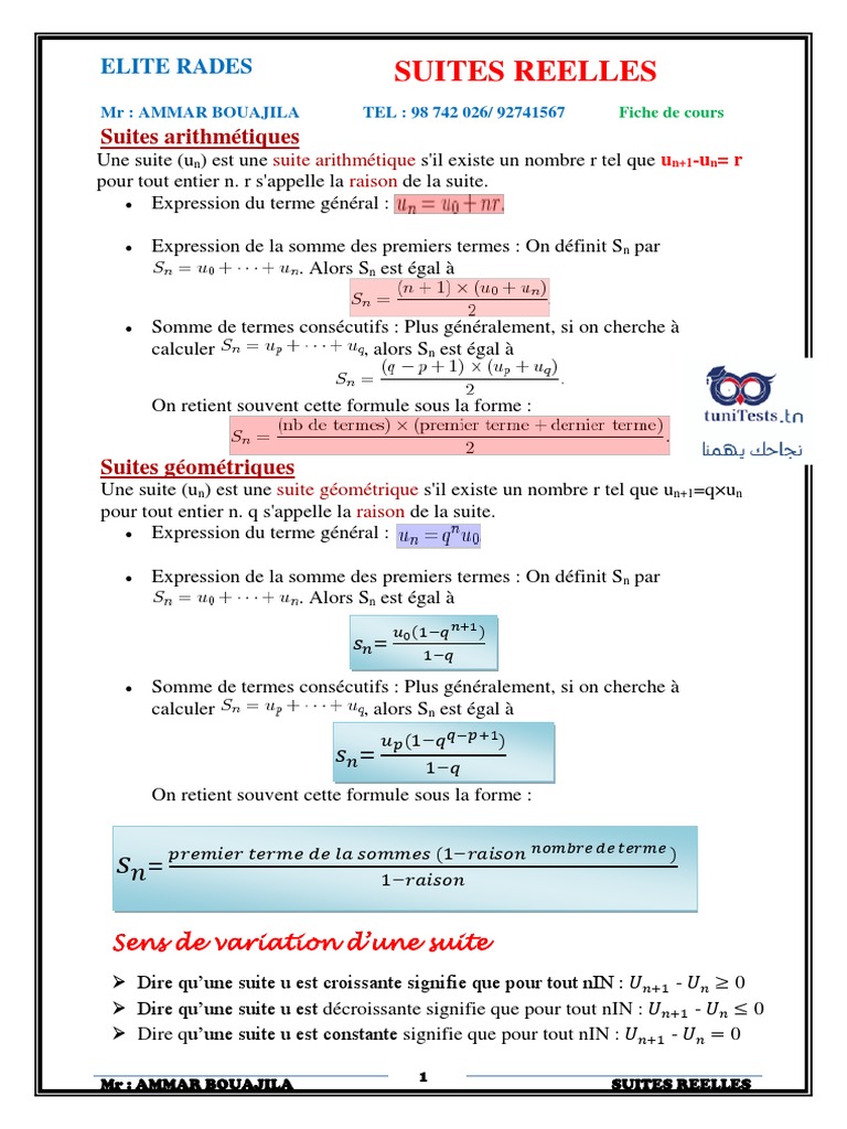 Cours 3eme Annee Secondaire Maths Suites Reelles Sequence