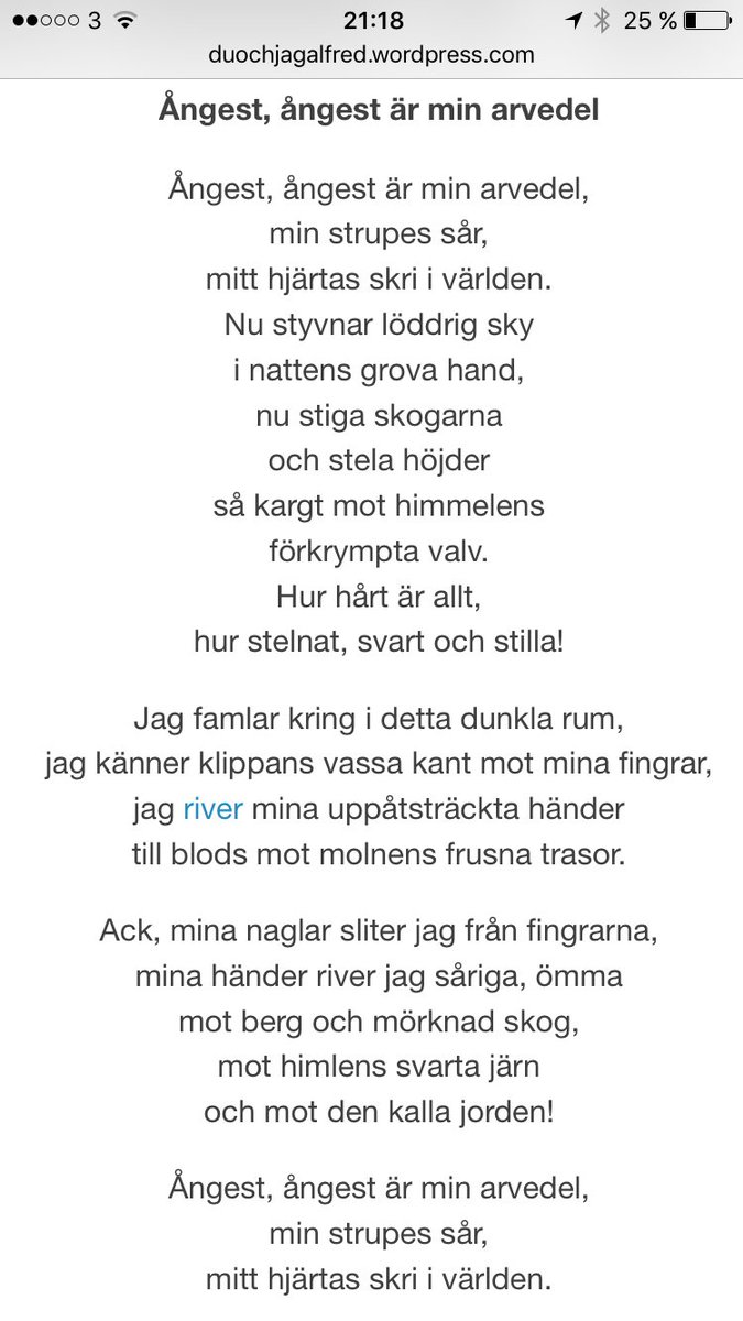 Angest Angest Ar Min Arvedel Lyrik Dikter Citat