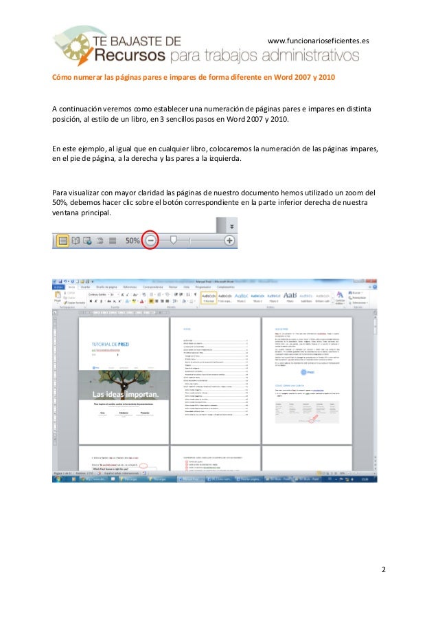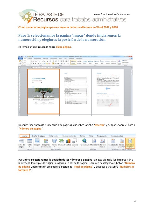 Como Numerar Las Paginas Impares A La Derecha Y Las Pares A La Izquierda En Word 2010 Y 2007 Youtube