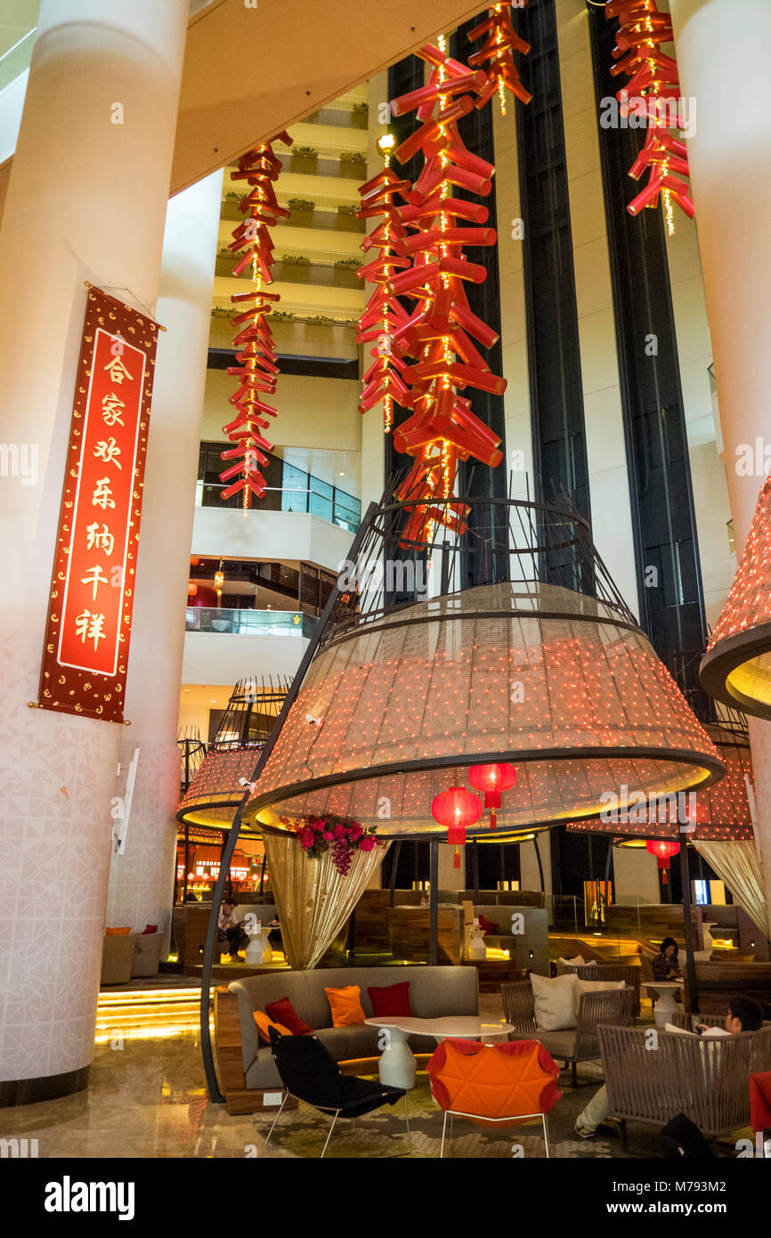 Booths Decorated For Chinese New Year In The Foyer Of The Pan Pacific Stock Photo Alamy