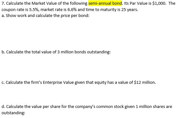 Solved 7 Calculate The Market Value Of The Following Sem