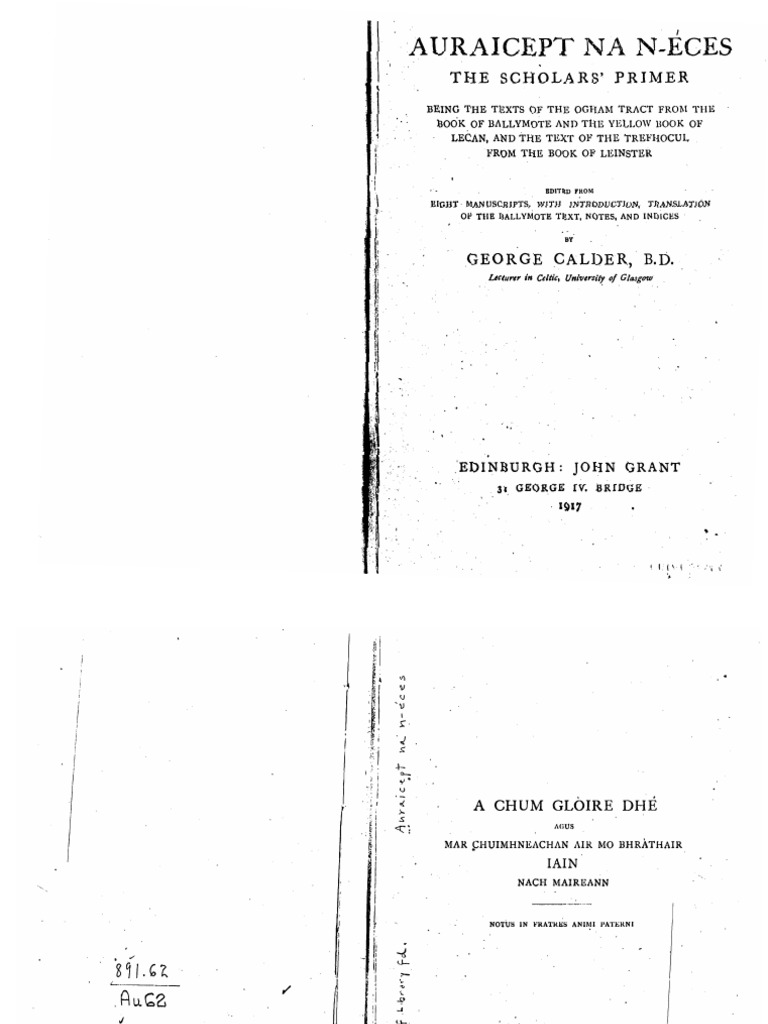 Auraicept Na N Eces The Scholars Primer Pdf Grammatical Gender