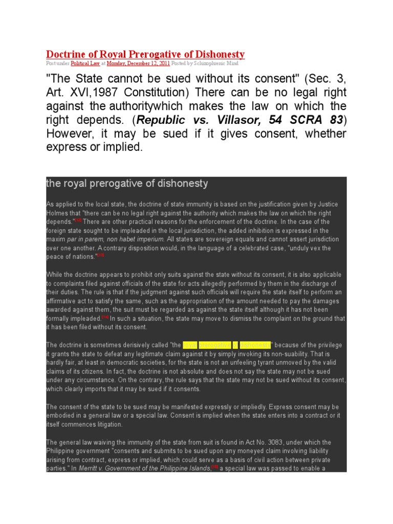 Doctrine Of Royal Prerogative Of Dishonesty Sovereign Immunity