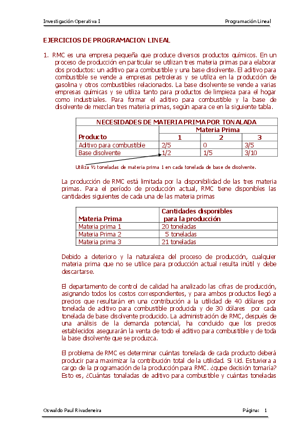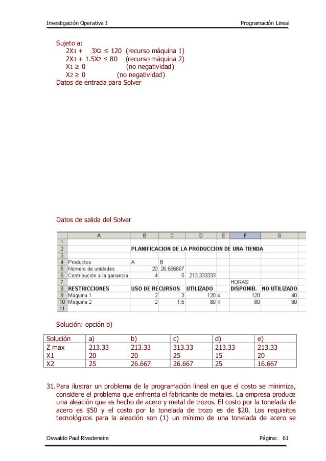 Pdf Investigacion Operativa I Programacion Lineal Ejercicios De