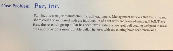 Solved Case Problem Par Inc Par Inc Is A Major Manuf