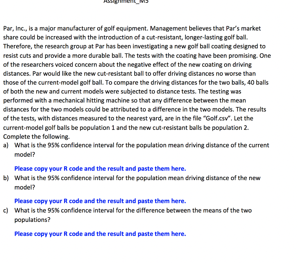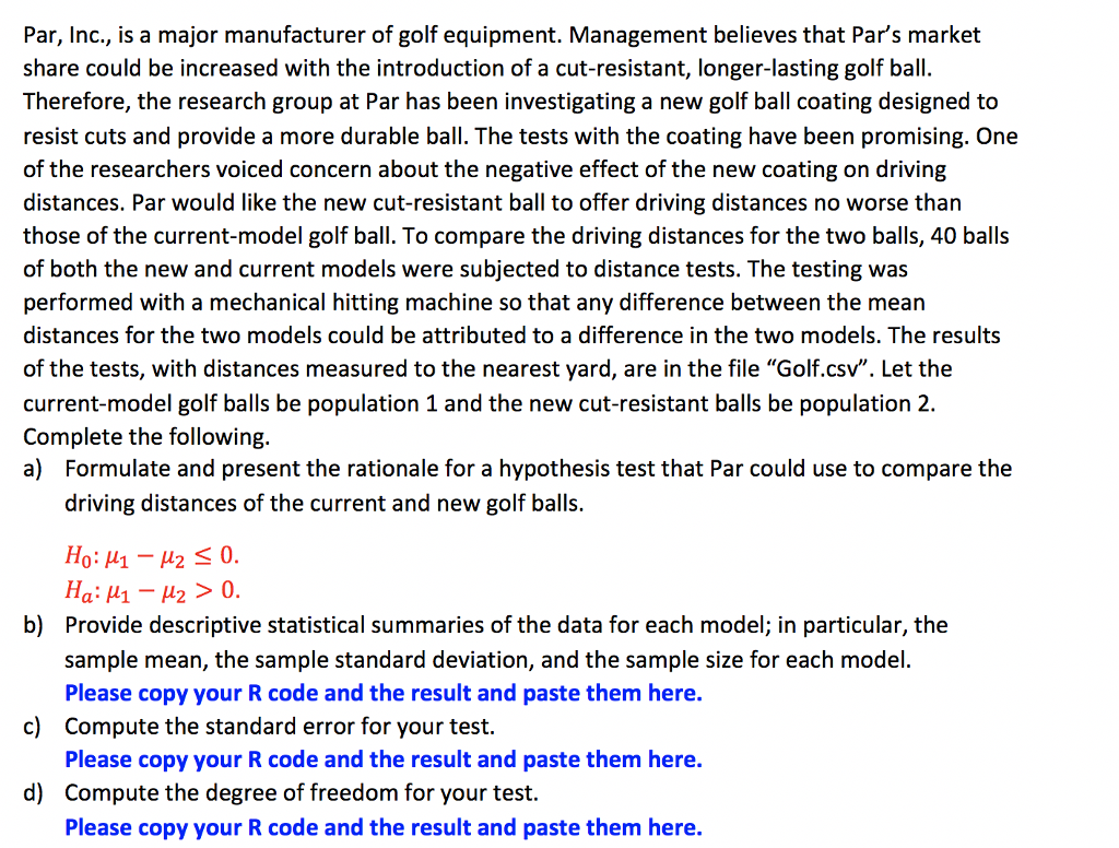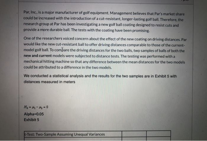 Solved Par Inc Is A Major Manufacturer Of Golf Equipment
