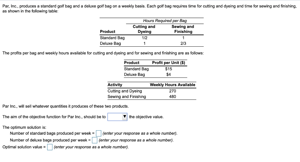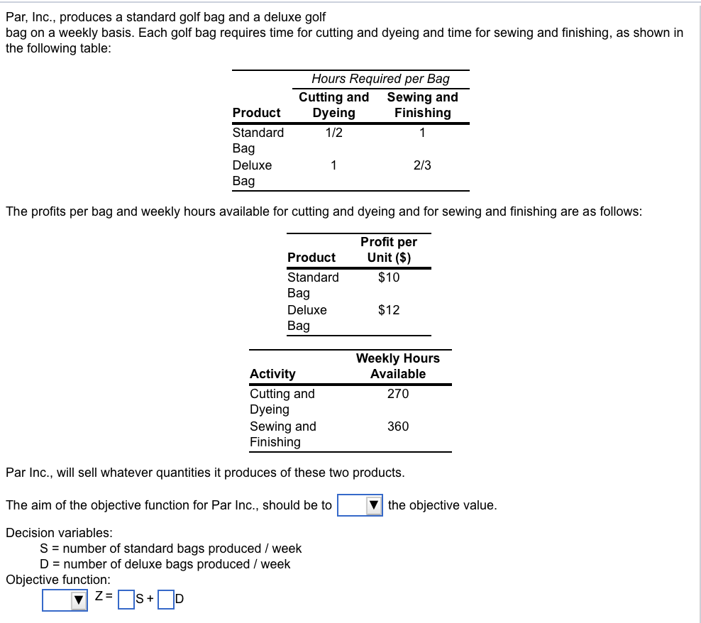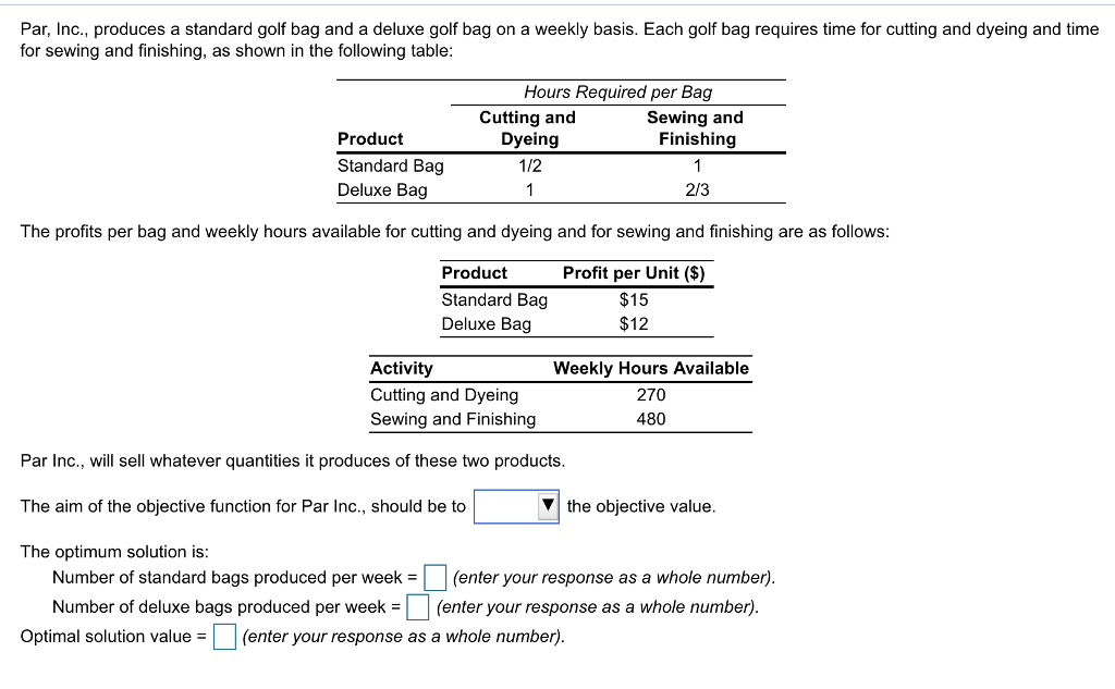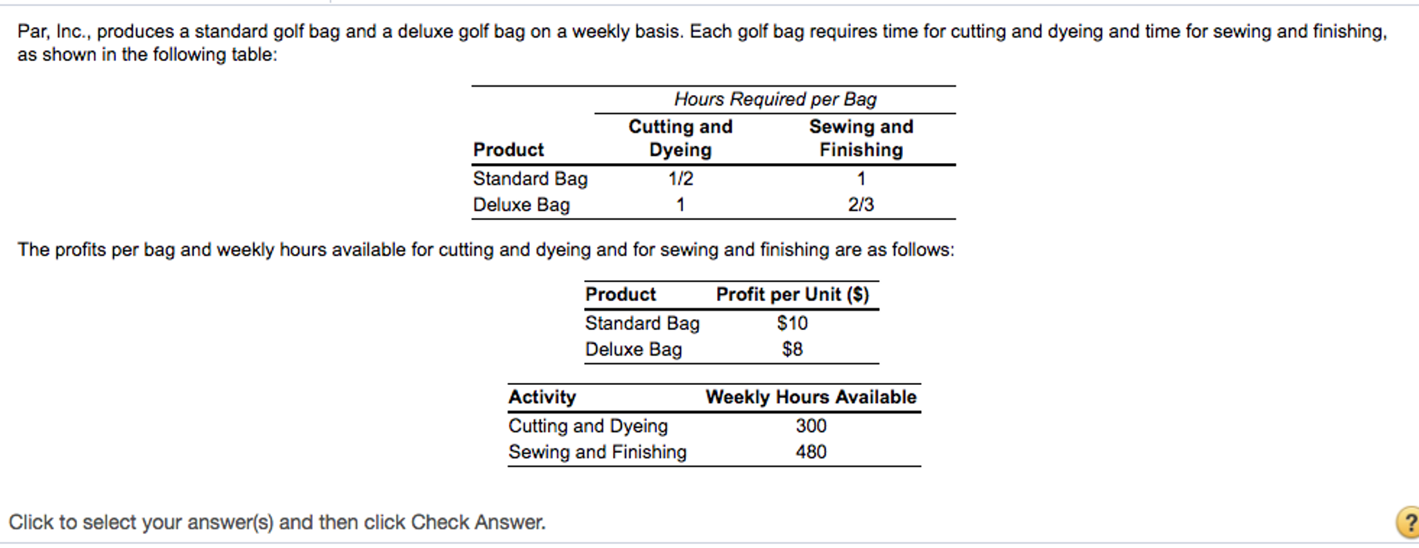 Solved Par Inc Produces A Standard Golf Bag And A Deluxe