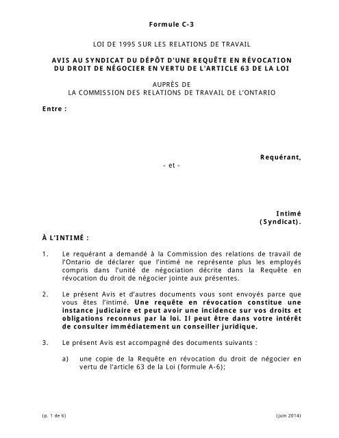 Avis Au Syndicat Du Depot D Une Requete En Revocation Du Droit De