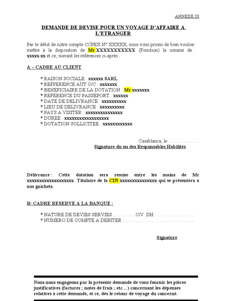 Demande De Devise Pour Un Voyage D Affaire A L Etranger
