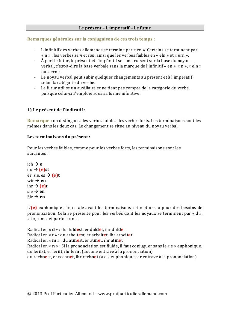Conjugaison Allemande Le Present L Imperatif Le Futur