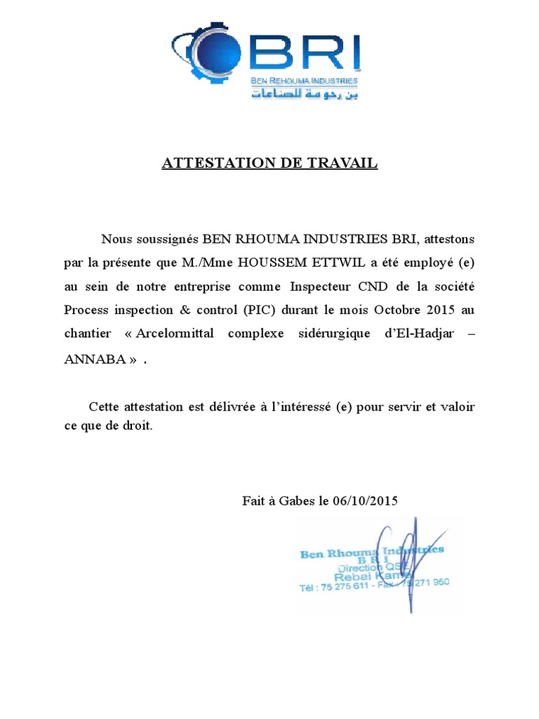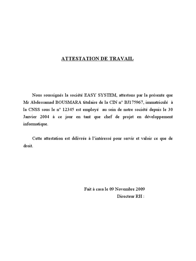 Modele De Attestation De Travail Doc Pdf Page 1 Sur 1