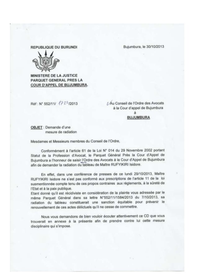 Burundi Demande De Radiation Du Batonnier Rufyikiri