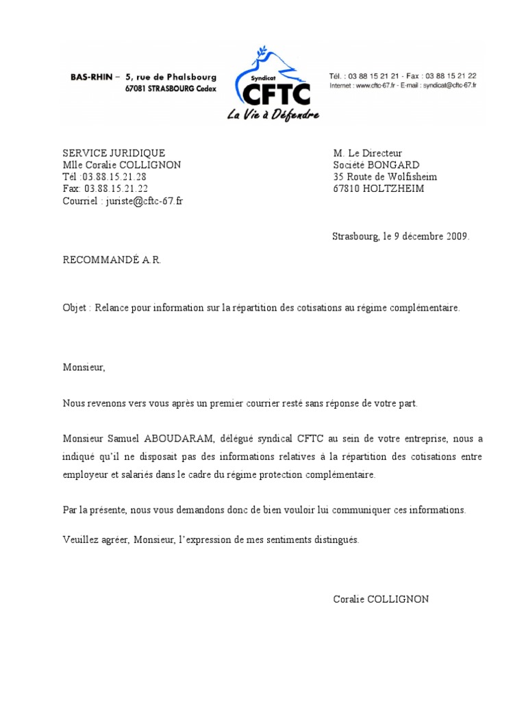 Courrier Relance Repartition Cotisations Mutuelle