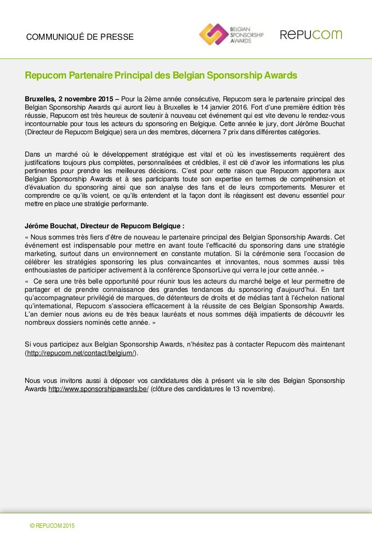 Repucom Partenaire Principal Des Belgian Sponsorship Awards