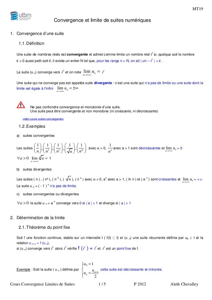 Suites Et Series 1 Generalites Sur Les Suites Sequence Serie