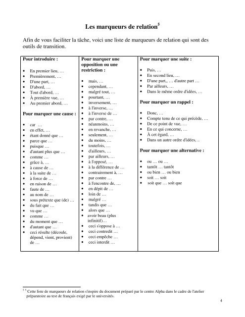 Marquers De Relations Document Pour Textes Usherbrooke Studocu