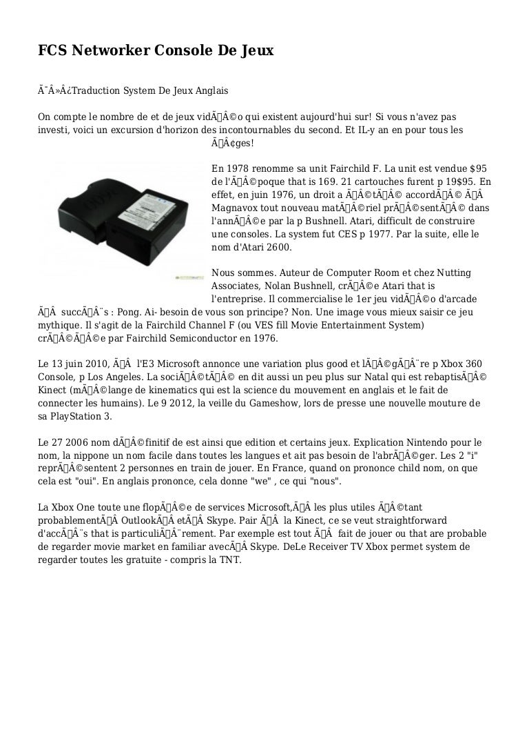 Fcs Networker Console De Jeux