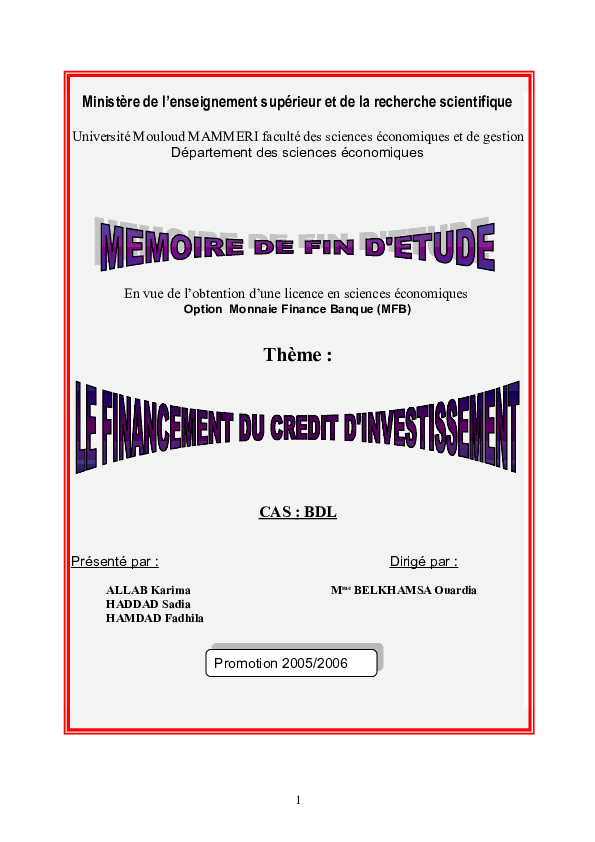 Pdf Ministere De L Enseignement Superieur Et De La Recherche Scientifique Cas Bdl Presente Par Dirige Par Anas Abdelouhab Academia Edu