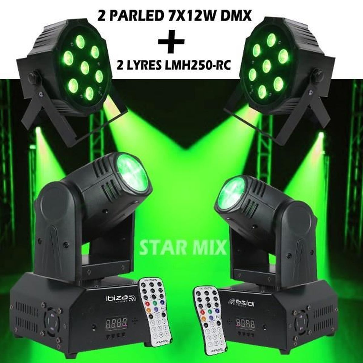 Pack 4 Jeux De Lumiere 2 Lyres Lmh250 Rc 2 Parled 7x12w Dmx Pa