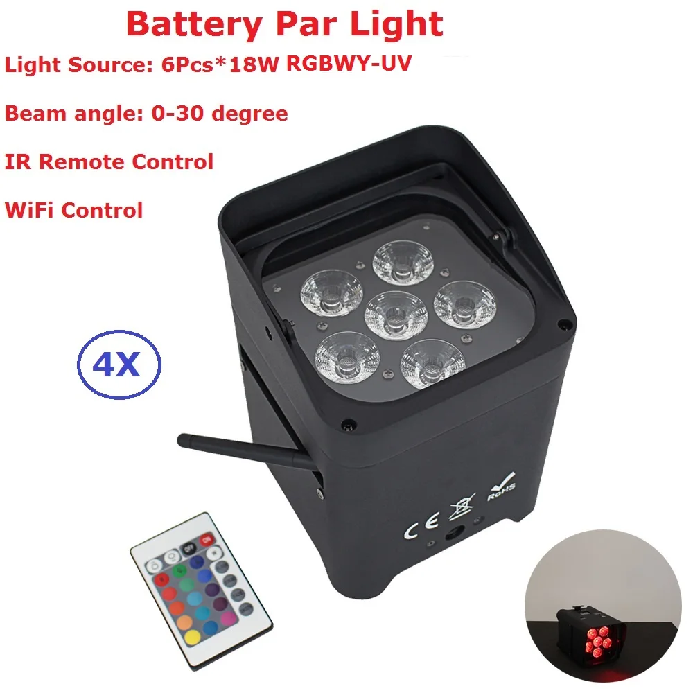 4pcs Lot 6x18w Dmx Wireless Battery Powered Led Par Light Rgbwy Uv