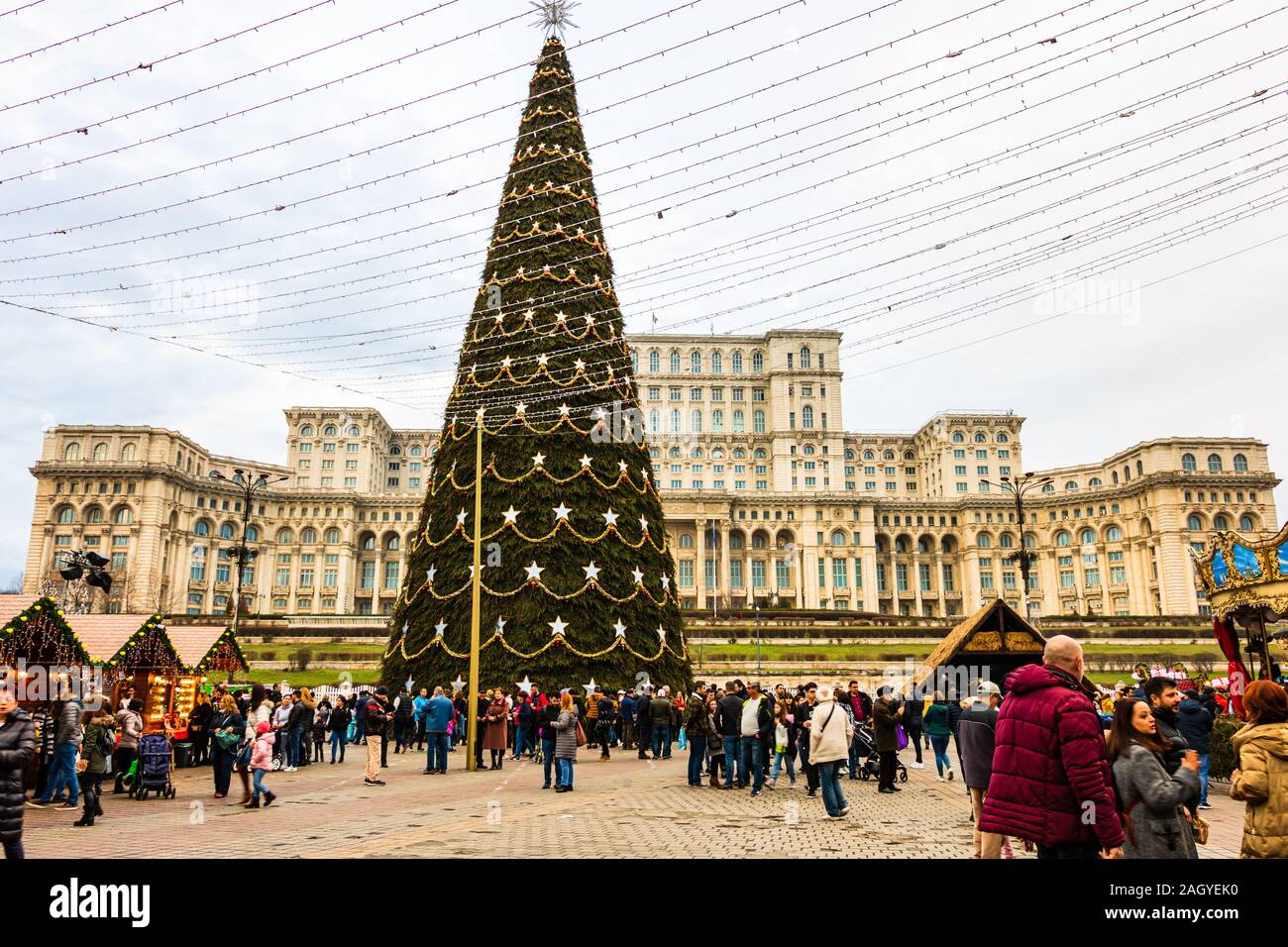 Bucharest Christmas Market Front Palace Parliament Stock Photo
